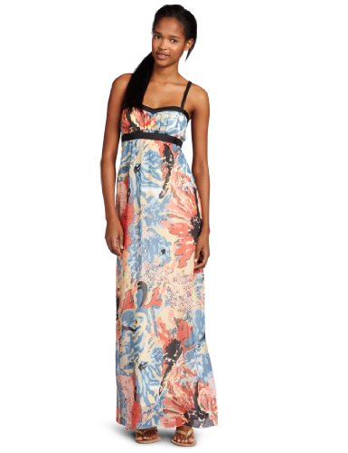 @@@ Product Details : Rampage Juniors Floral Printed Maxi Dress, Black/Coral, X-Large
